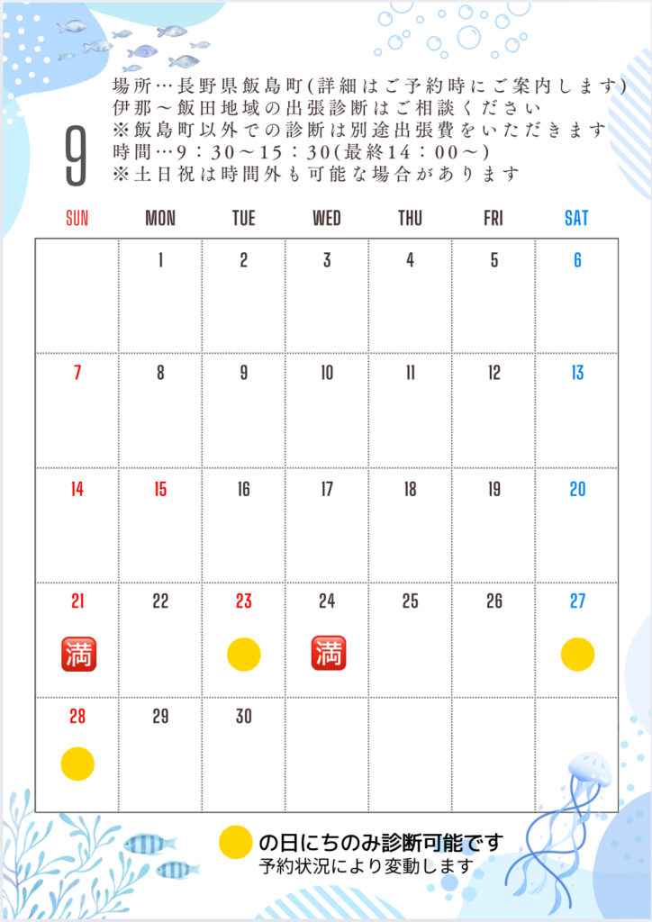 9月の診断日のお知らせです。※9/19更新
